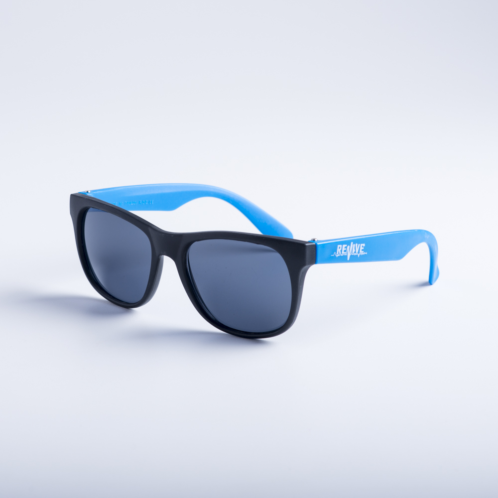 Here is the Sky model of ReVive's Sun Armors series!! Black and Blue with the classic ReVive Lifeline logo on both sides. UV Eye Protection.